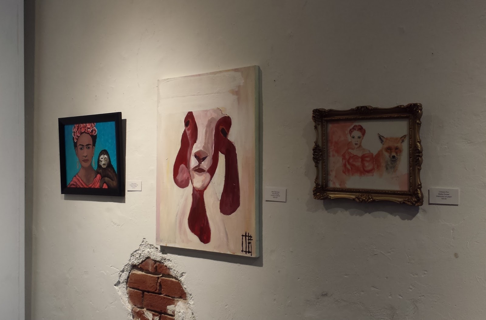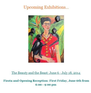 I wanted to enter the Mattie Rhodes “Beauty and the Beast” art show for the June, first Friday art event. I had to get busy painting. I entered on the last day to drop off work. I love painting in Frida Kahlo themes. It’s not what I normally paint if I had a “normal” painting style however I love painting with many colors, and bright colors. The artist Frida Kahlo was famous for her self portraits that pictured her pain and tortured due to an accident which left her in extreme pain and with disabilities that her art could express. On a lighter note, Frida was not all pain and sorrow, she loved animals and was said to possess many monkeys and birds. Much of her life was bed ridden so animals offered a small comfort to her pain.